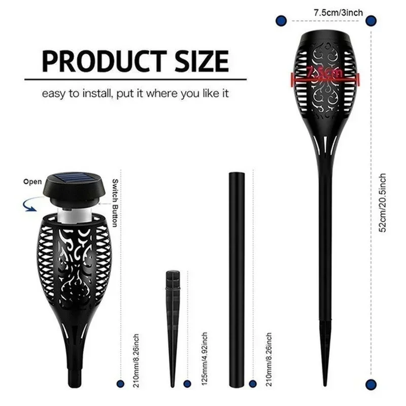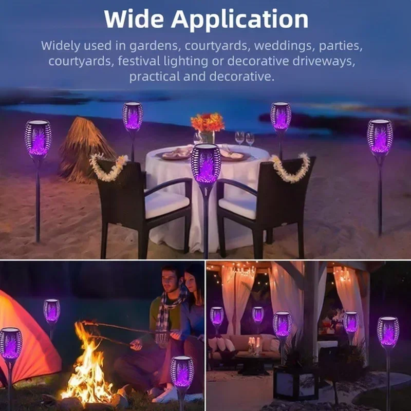 3. Easy Installation: No wiring required, simply install flame solar lights outside like yard, pathways, pool, garden, bench, patio, fence, deck, or outdoor events like party, camping, barbecue, wedding, Christmas, Halloween festival.